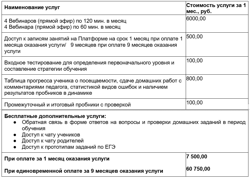 4.14.2. Услуга может включать в себя как проведение единичного Вебинара, так и проведение нескольких Вебинаров. Исполнитель может составить расписание проведения Вебинаров, в таком случае, информация о расписании доводится Исполнителем до Обучающегося.